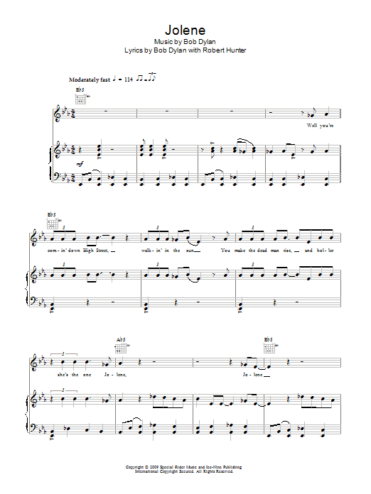 Download or print Bob Dylan Jolene sheet music, chords and digital score arranged for Piano, Vocal & Guitar Chords. This Blues score includes 5 page(s).