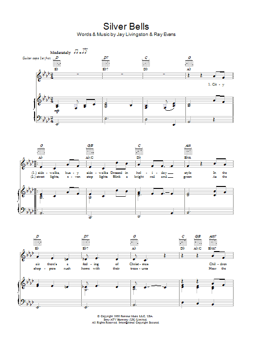Download or print Bob Dylan Silver Bells sheet music, chords and digital score arranged for Piano, Vocal & Guitar Chords. This Christmas score includes 3 page(s).