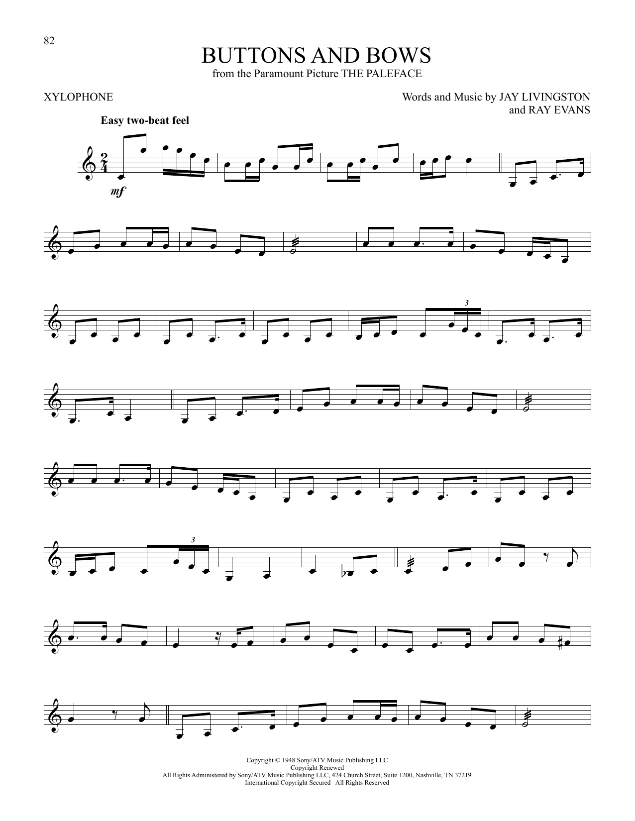 Download or print Bob Hope Buttons And Bows (from The Paleface) sheet music, chords and digital score arranged for Xylophone Solo. This Pop score includes 2 page(s).