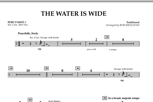 Download or print Bob Krogstad The Water Is Wide - Percussion 1 sheet music, chords and digital score arranged for Orchestra. This Folk score includes 1 page(s).