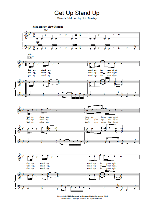 Download or print Bob Marley Get Up Stand Up sheet music, chords and digital score arranged for Guitar Tab. This Pop score includes 3 page(s).