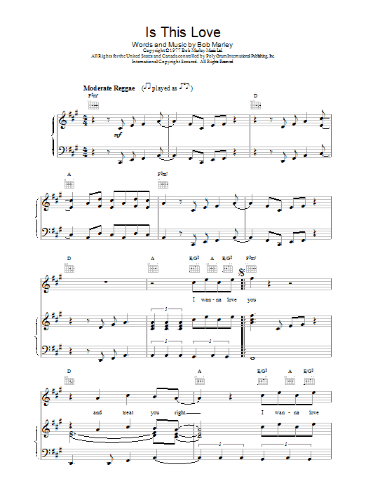 Download or print Bob Marley Is This Love sheet music, chords and digital score arranged for Guitar Tab (Single Guitar). This Pop score includes 8 page(s).