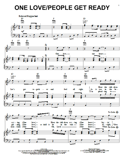 Download or print Bob Marley People Get Ready sheet music, chords and digital score arranged for Piano, Vocal & Guitar Chords (Right-Hand Melody). This Reggae score includes 3 page(s).