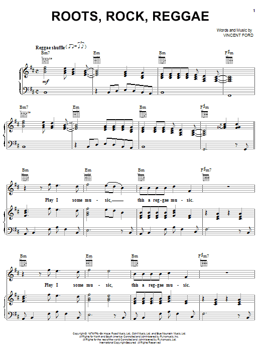 Download or print Bob Marley Roots, Rock, Reggae sheet music, chords and digital score arranged for Guitar Chords/Lyrics. This Reggae score includes 2 page(s).