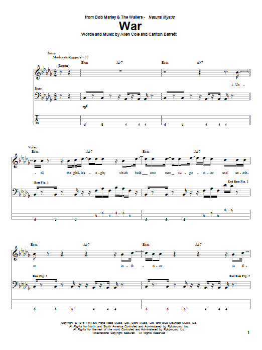 Download or print Bob Marley War sheet music, chords and digital score arranged for Guitar Chords/Lyrics. This Reggae score includes 2 page(s).