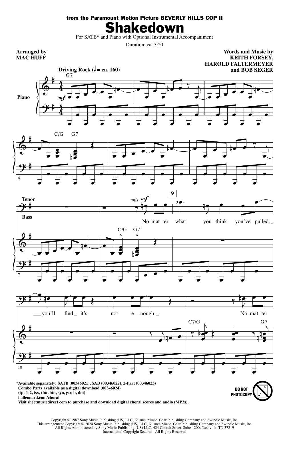 Download or print Bob Seger Shakedown (arr. Mac Huff) sheet music, chords and digital score arranged for SAB Choir. This Rock score includes 13 page(s).