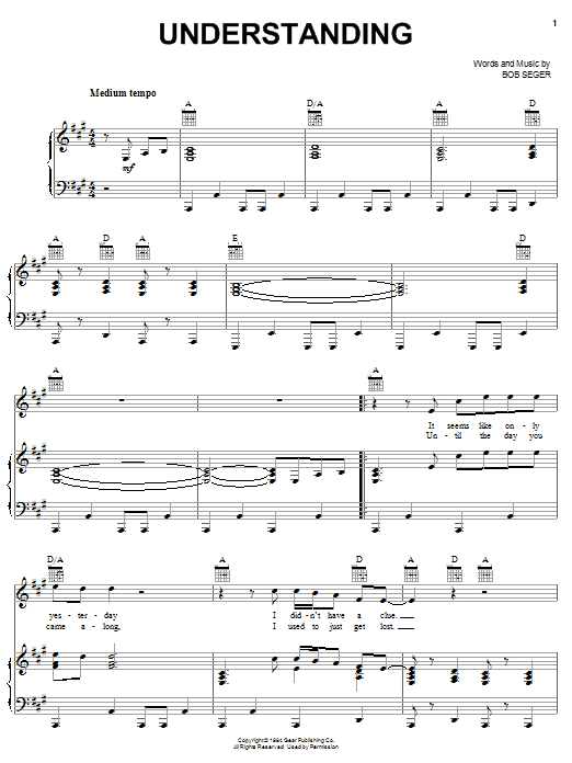 Download or print Bob Seger Understanding sheet music, chords and digital score arranged for Guitar Tab. This Pop score includes 7 page(s).