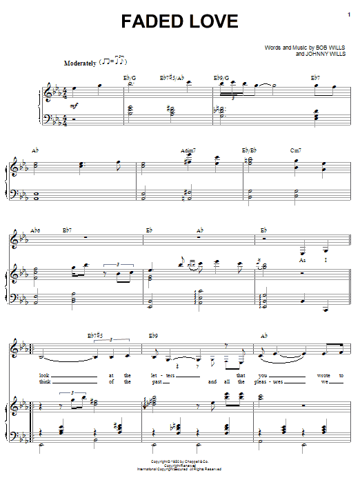 Download or print Bob Wills Faded Love sheet music, chords and digital score arranged for Piano Solo. This Country score includes 4 page(s).