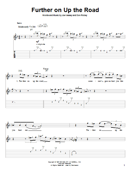 Download or print Bobby "Blue" Bland Further On Up The Road sheet music, chords and digital score arranged for Guitar Tab. This Blues score includes 8 page(s).