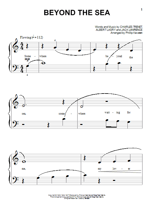 Download or print Bobby Darin Beyond The Sea (arr. Phillip Keveren) sheet music, chords and digital score arranged for Easy Piano. This Love score includes 4 page(s).