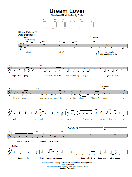 Download or print Bobby Darin Dream Lover sheet music, chords and digital score arranged for Trumpet Solo. This Pop score includes 1 page(s).
