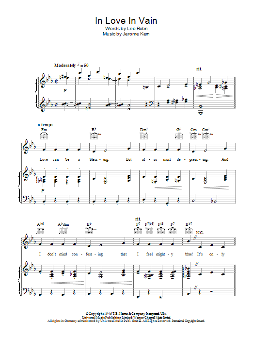 Download or print Bobby Darin In Love In Vain sheet music, chords and digital score arranged for Piano, Vocal & Guitar Chords. This Standards score includes 3 page(s).