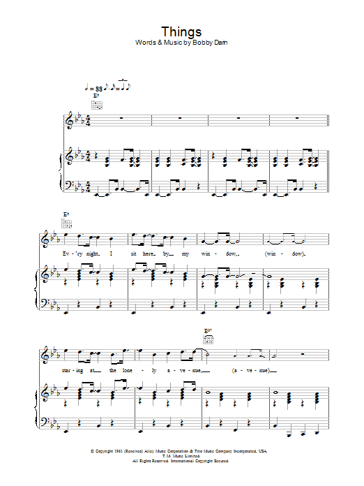 Download or print Bobby Darin Things sheet music, chords and digital score arranged for Lead Sheet / Fake Book. This Pop score includes 1 page(s).