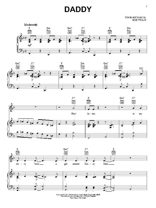 Download or print Bobby Troup Daddy sheet music, chords and digital score arranged for Piano, Vocal & Guitar Chords (Right-Hand Melody). This Jazz score includes 5 page(s).