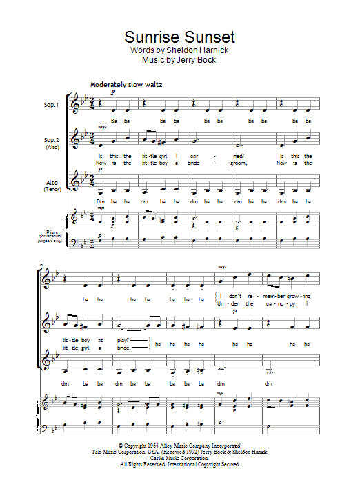 Quick facts Sunrise, Sunset (from Fiddler On The Roof) about digital sheet music