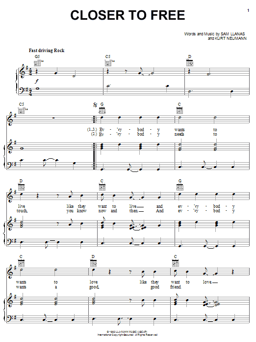 Download or print BoDeans Closer To Free sheet music, chords and digital score arranged for Lead Sheet / Fake Book. This Film/TV score includes 1 page(s).