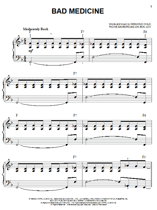 Download or print Bon Jovi Bad Medicine sheet music, chords and digital score arranged for Guitar Tab. This Metal score includes 9 page(s).
