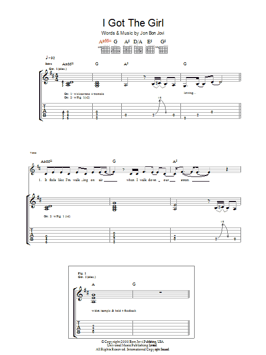 Download or print Bon Jovi I Got The Girl sheet music, chords and digital score arranged for Guitar Tab. This Rock score includes 10 page(s).