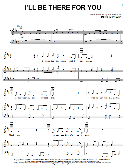 Download or print Bon Jovi I'll Be There For You sheet music, chords and digital score arranged for Solo Guitar. This Pop score includes 5 page(s).