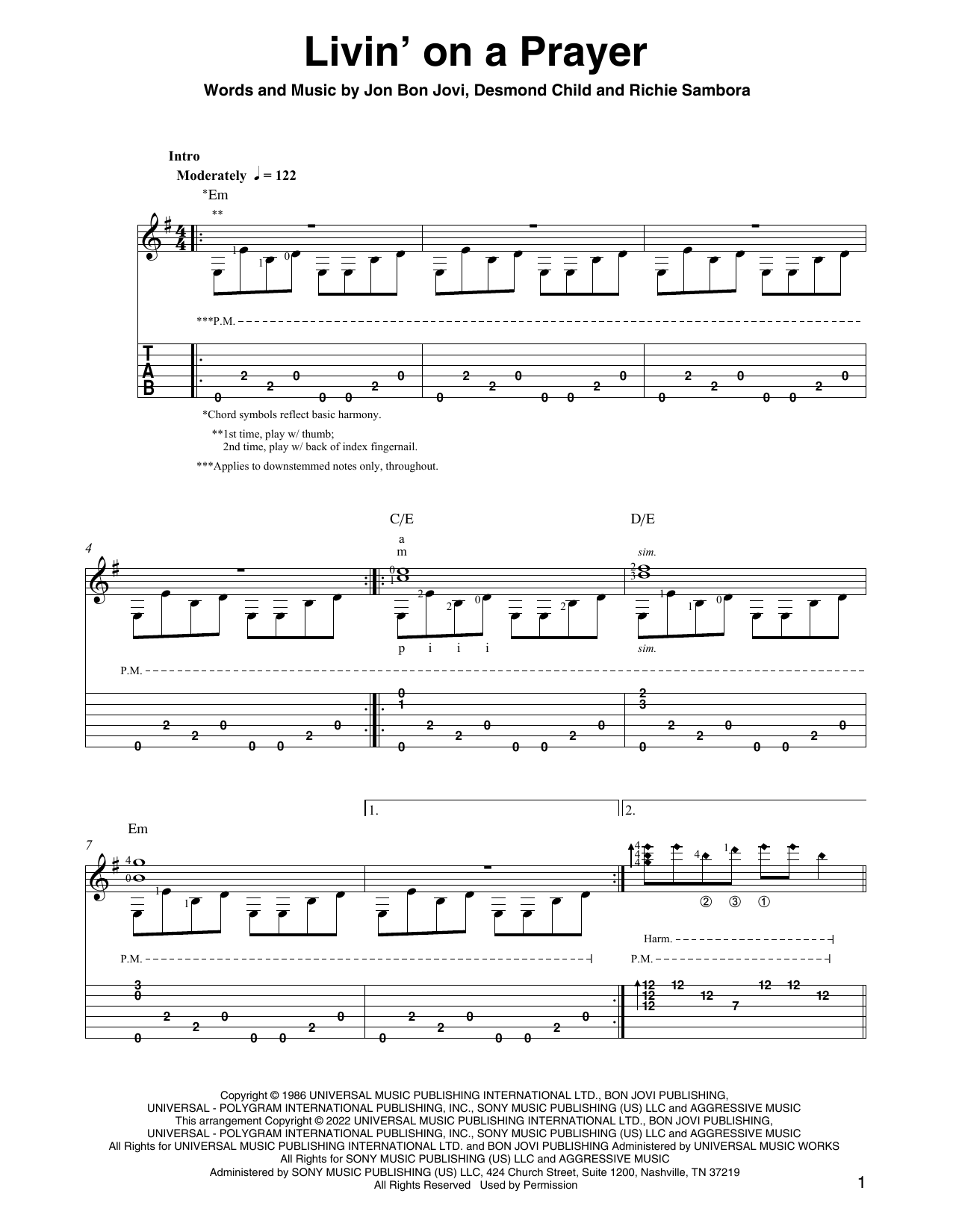 Download or print Bon Jovi Livin' On A Prayer (arr. Ben Pila) sheet music, chords and digital score arranged for Solo Guitar. This Pop score includes 7 page(s).