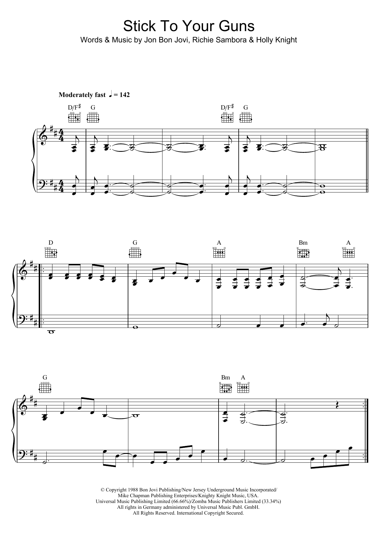 Download or print Bon Jovi Stick To Your Guns sheet music, chords and digital score arranged for Piano, Vocal & Guitar Chords. This Pop score includes 7 page(s).