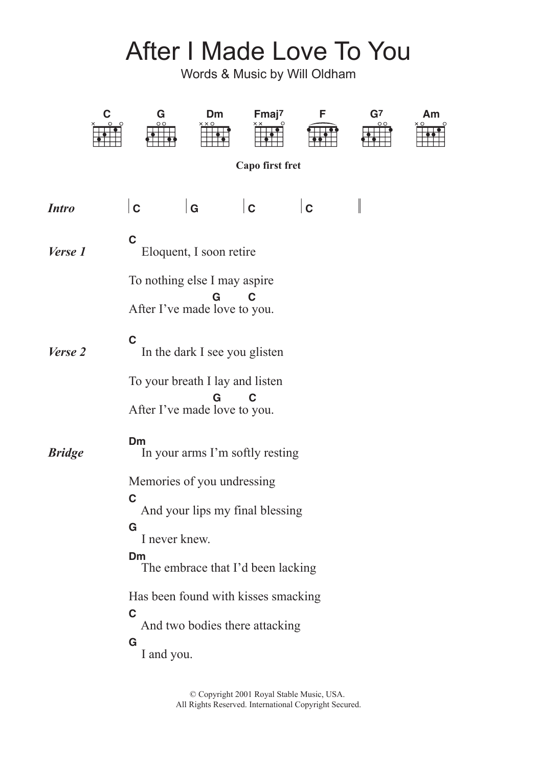Download or print Bonnie ‘Prince’ Billy After I Made Love To You sheet music, chords and digital score arranged for Guitar Chords/Lyrics. This Country score includes 2 page(s).
