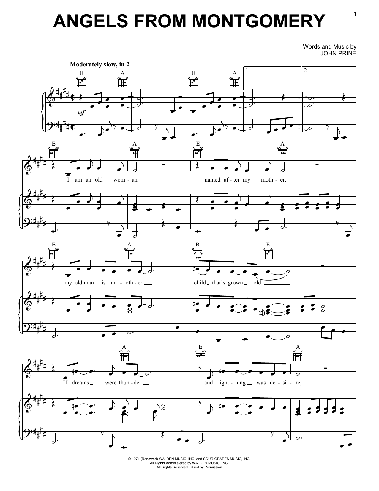 Download or print Bonnie Raitt Angels From Montgomery sheet music, chords and digital score arranged for Piano, Vocal & Guitar Chords (Right-Hand Melody). This Pop score includes 6 page(s).