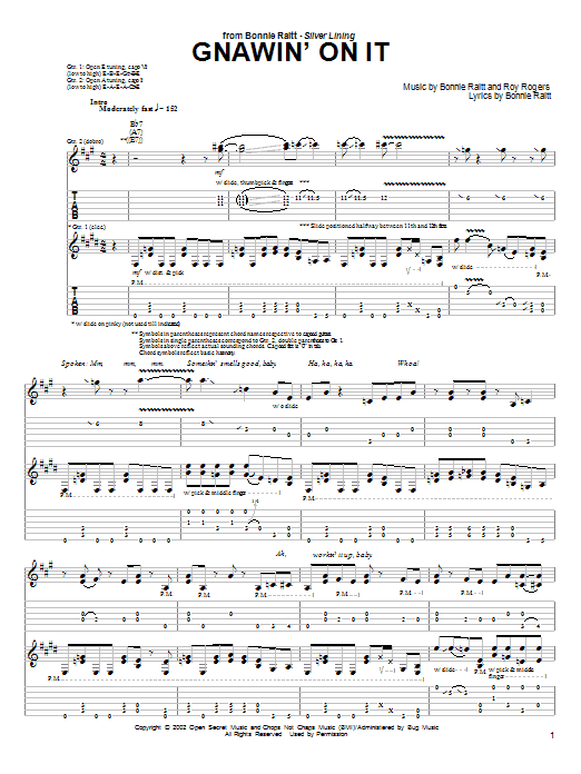 Download or print Bonnie Raitt Gnawin' On It sheet music, chords and digital score arranged for Piano, Vocal & Guitar Chords (Right-Hand Melody). This Blues score includes 5 page(s).