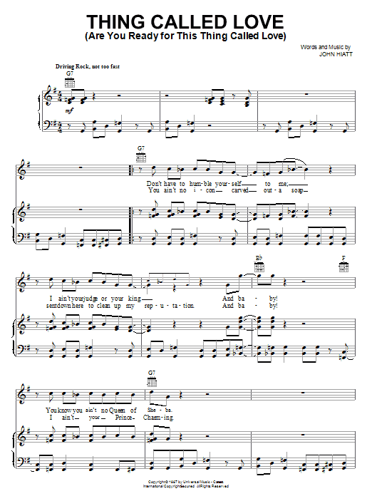 Download or print Bonnie Raitt Thing Called Love (Are You Ready For This Thing Called Love) sheet music, chords and digital score arranged for Piano, Vocal & Guitar Chords (Right-Hand Melody). This Country score includes 6 page(s).