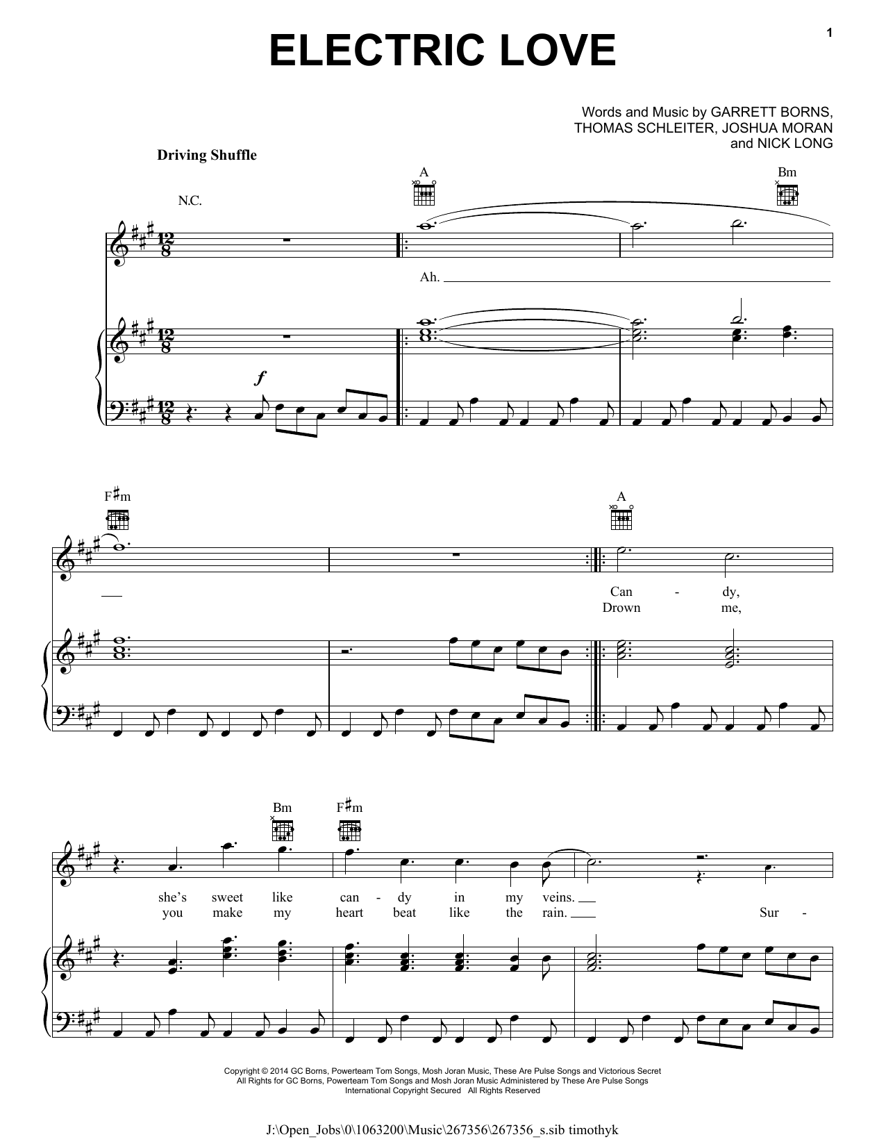 Download or print BORNS Electric Love sheet music, chords and digital score arranged for Piano, Vocal & Guitar Chords (Right-Hand Melody). This Pop score includes 7 page(s).