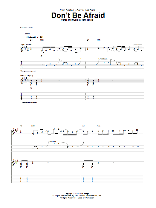 Download or print Boston Don't Be Afraid sheet music, chords and digital score arranged for Guitar Tab. This Pop score includes 14 page(s).