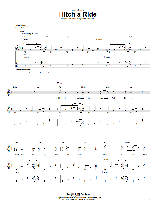 Download or print Boston Hitch A Ride sheet music, chords and digital score arranged for Piano, Vocal & Guitar Chords (Right-Hand Melody). This Pop score includes 3 page(s).