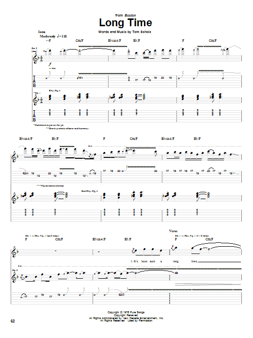 Download or print Boston Long Time sheet music, chords and digital score arranged for Guitar Tab. This Pop score includes 19 page(s).