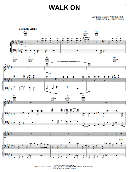 Download or print Boston Walk On sheet music, chords and digital score arranged for Piano, Vocal & Guitar Chords (Right-Hand Melody). This Pop score includes 7 page(s).