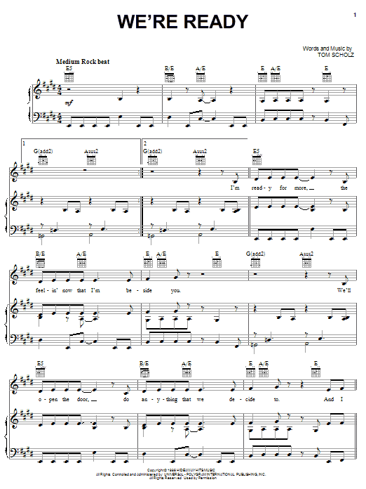 Download or print Boston We're Ready sheet music, chords and digital score arranged for Lead Sheet / Fake Book. This Pop score includes 2 page(s).