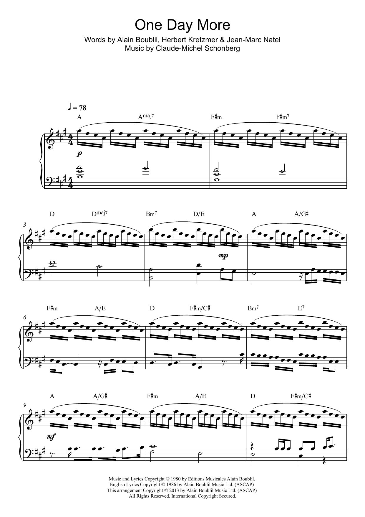 Download or print Boublil and Schonberg One Day More (from Les Miserables) sheet music, chords and digital score arranged for Piano Solo. This Musical/Show score includes 4 page(s).