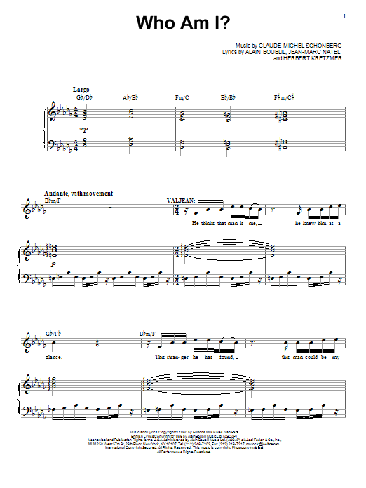 Download or print Boublil and Schonberg Who Am I? (from Les Miserables) sheet music, chords and digital score arranged for Piano & Vocal. This Classical score includes 6 page(s).