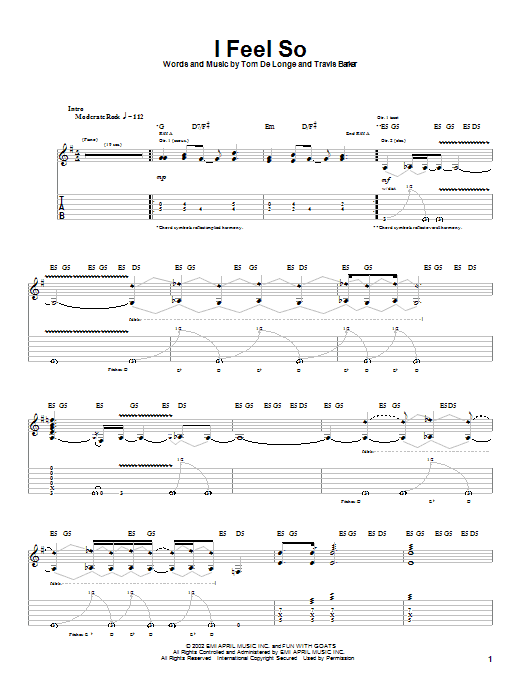 Download or print Box Car Racer I Feel So sheet music, chords and digital score arranged for Guitar Tab. This Rock score includes 6 page(s).