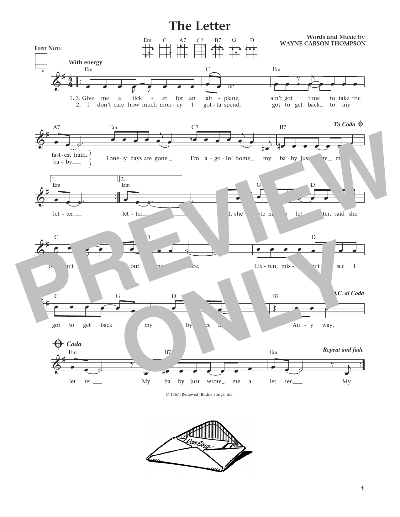 Download or print Box Tops The Letter (from The Daily Ukulele) (arr. Liz and Jim Beloff) sheet music, chords and digital score arranged for Ukulele. This Pop score includes 1 page(s).