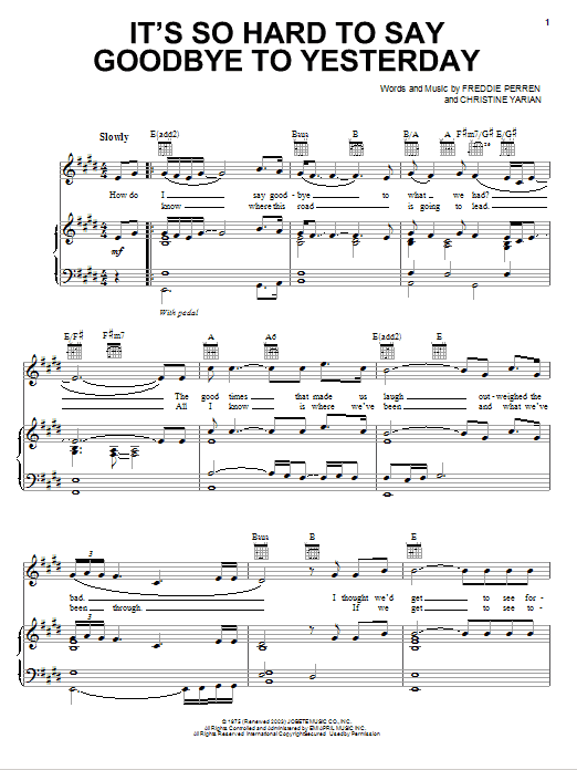 Quick facts It's So Hard To Say Goodbye To Yesterday about digital sheet music