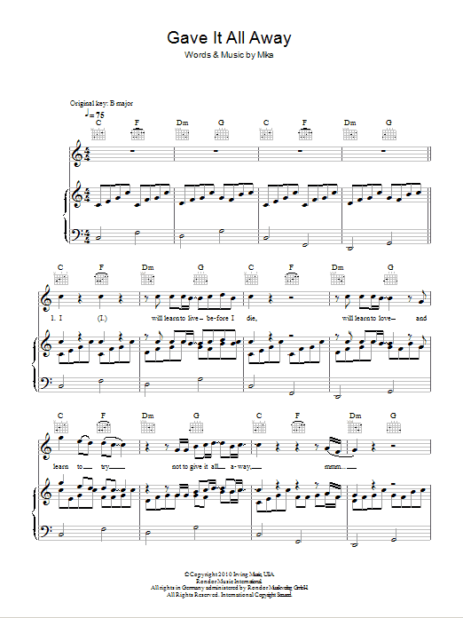 Download or print Boyzone Gave It All Away sheet music, chords and digital score arranged for Piano, Vocal & Guitar Chords. This Love score includes 5 page(s).