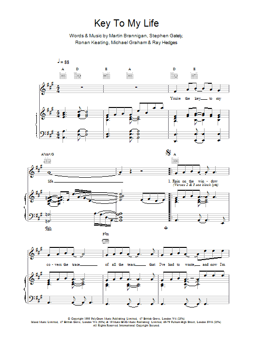 Download or print Boyzone Key To My Life sheet music, chords and digital score arranged for Guitar Chords/Lyrics. This Pop score includes 3 page(s).