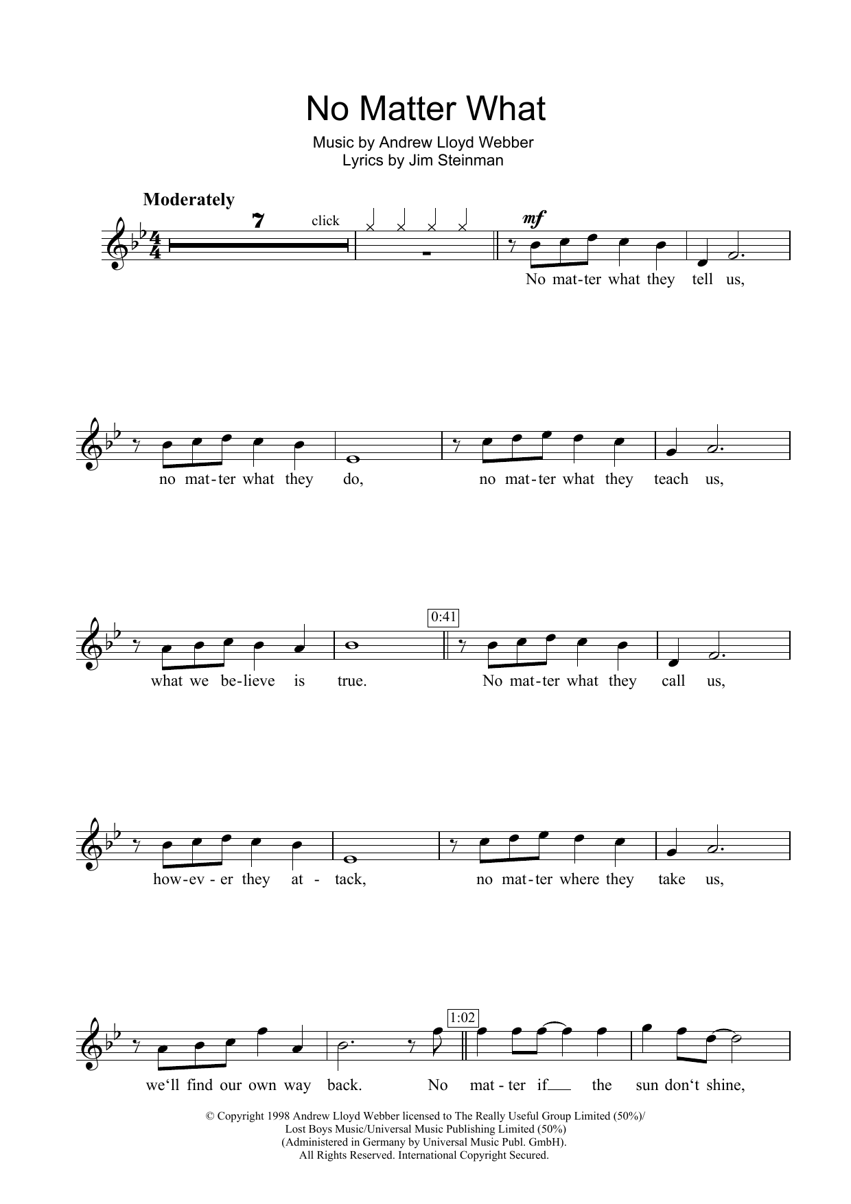 Download or print Boyzone No Matter What (from Whistle Down The Wind) sheet music, chords and digital score arranged for Flute Solo. This Pop score includes 3 page(s).