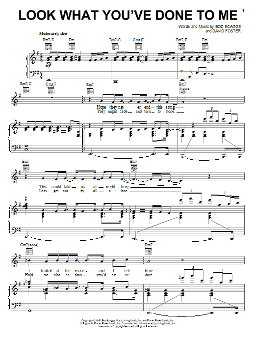 Download or print Boz Scaggs Look What You've Done To Me sheet music, chords and digital score arranged for Lead Sheet / Fake Book. This Pop score includes 2 page(s).
