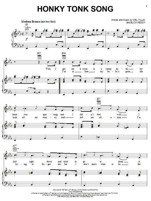 Download or print BR549 Honky Tonk Song sheet music, chords and digital score arranged for Piano, Vocal & Guitar Chords (Right-Hand Melody). This Country score includes 3 page(s).
