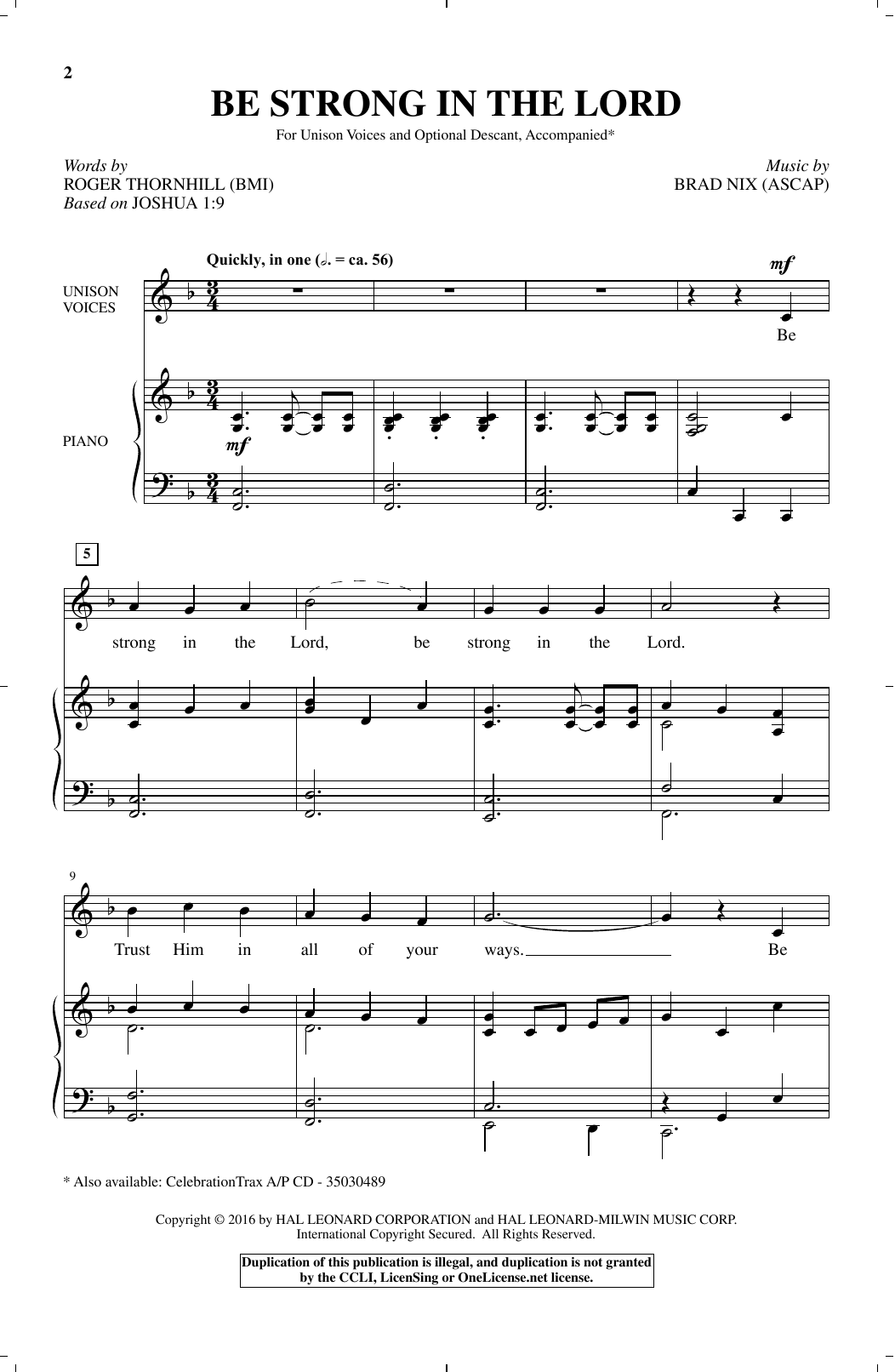 Download or print Brad Nix Be Strong In The Lord sheet music, chords and digital score arranged for Unison Choir. This Children score includes 7 page(s).