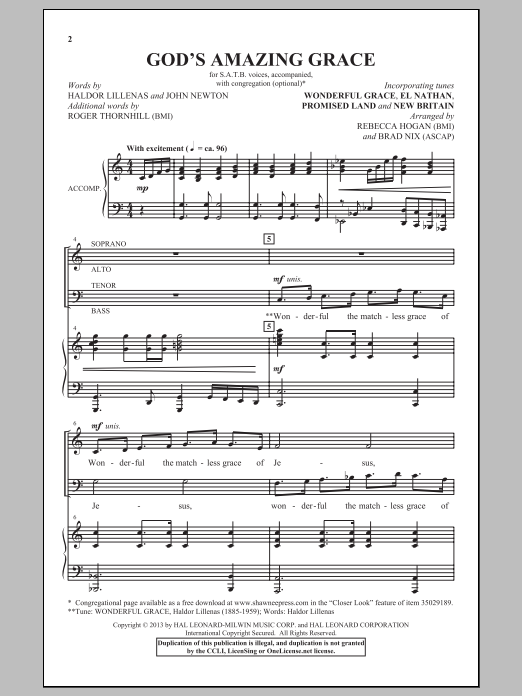 Download or print Brad Nix God's Amazing Grace sheet music, chords and digital score arranged for SATB Choir. This Sacred score includes 9 page(s).