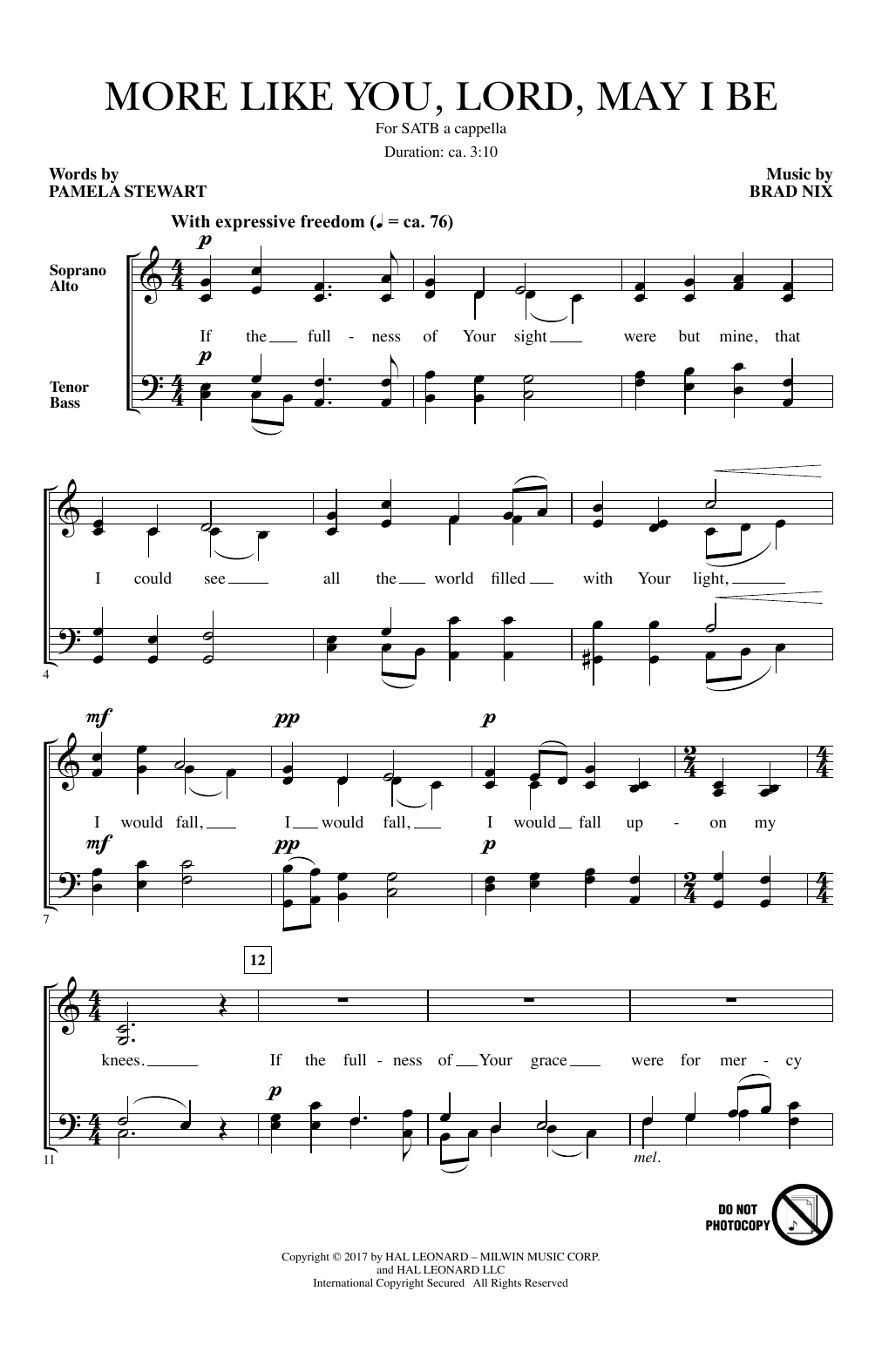 Download or print Brad Nix More Like You, Lord, May I Be sheet music, chords and digital score arranged for SATB Choir. This Sacred score includes 3 page(s).