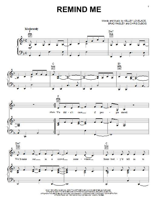 Download or print Brad Paisley & Carrie Underwood Remind Me sheet music, chords and digital score arranged for Guitar Tab. This Country score includes 12 page(s).