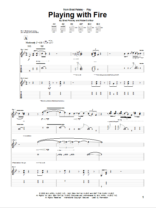 Download or print Brad Paisley Playing With Fire sheet music, chords and digital score arranged for Guitar Tab. This Country score includes 17 page(s).
